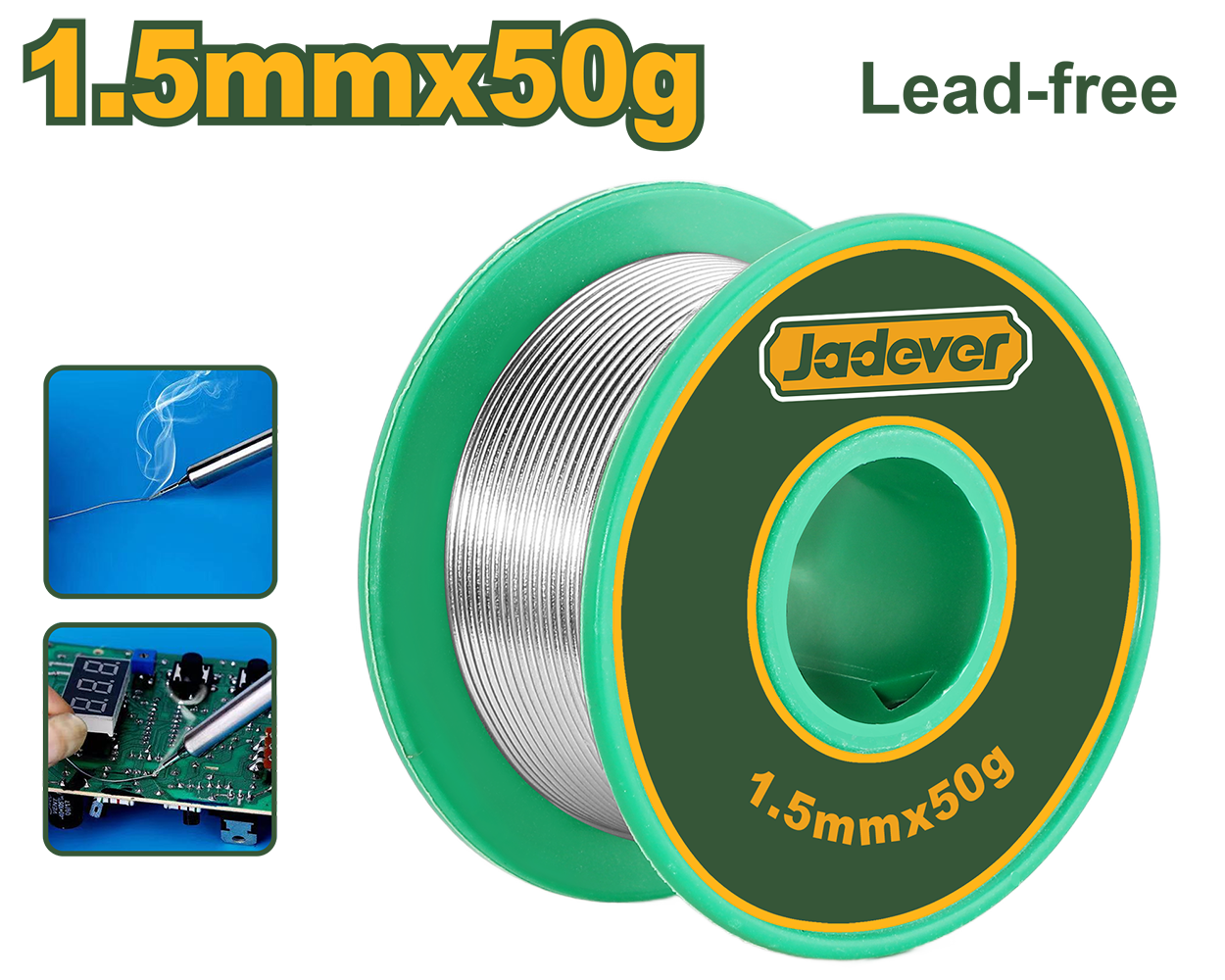 El alambre de soldadura Jadever modelo JDHXS1315 es un consumible de alta pureza diseñado para cumplir con los estándares modernos de electrónica. Al ser una fórmula sin plomo, es una opción segura para el usuario y amigable con el medio ambiente, cumpliendo con las regulaciones de salud y seguridad laboral vigentes.