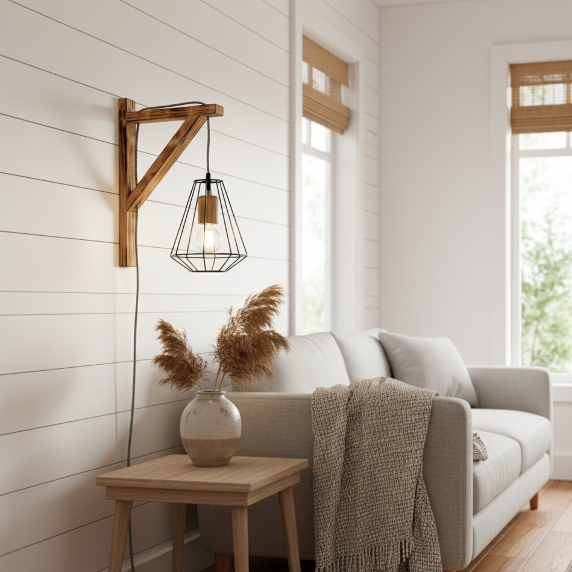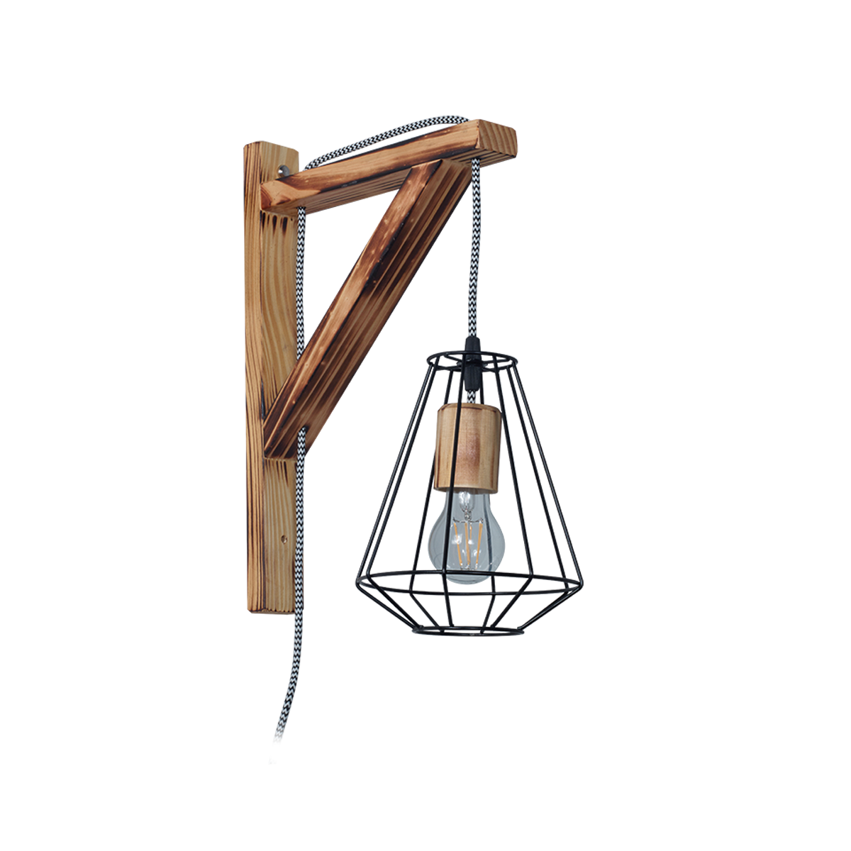 Aplique Ménsula de Madera Tratada con Fuego con Jaula Metálica