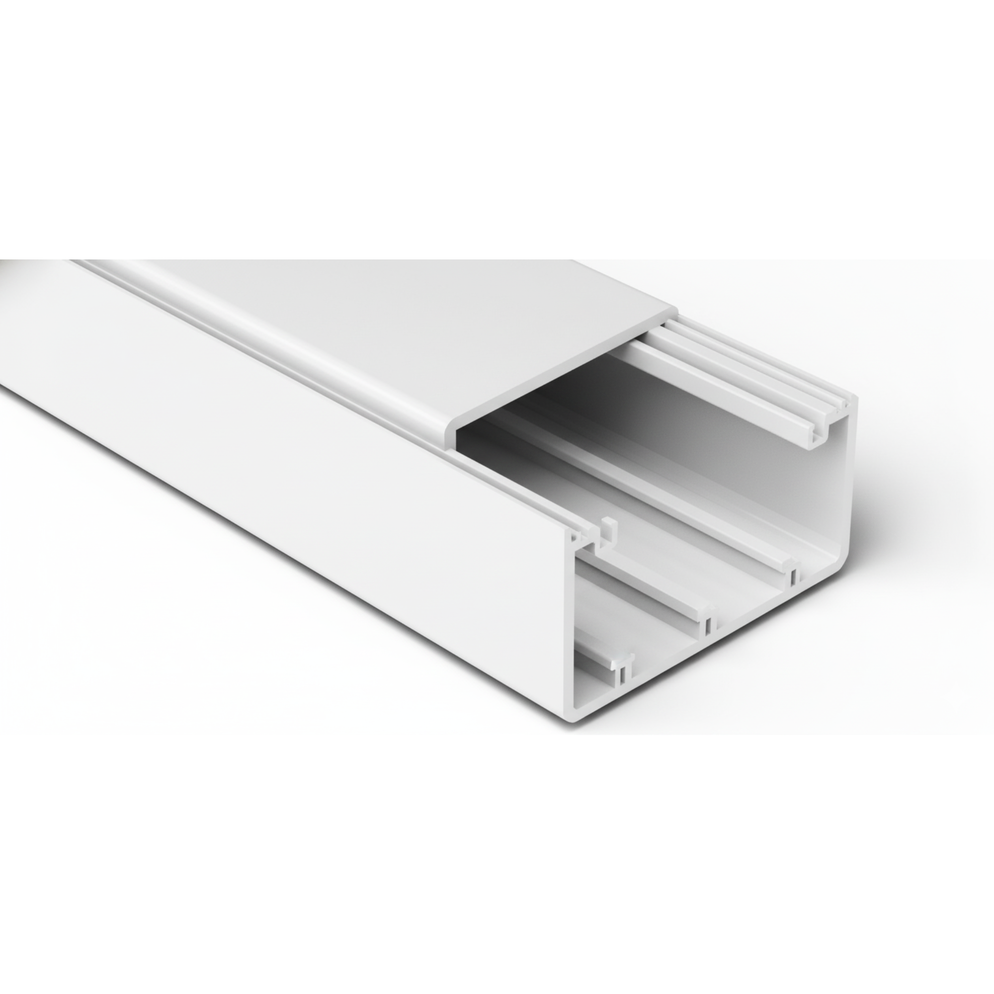 El Cablecanal de 100×50 mm es la solución de ultra-alta capacidad, diseñado para gestionar los volúmenes de cableado más extensos y complejos, típicamente en entornos industriales, grandes centros de datos, o como canalización troncal principal en edificios comerciales. Con sus generosas dimensiones de 10 cm de ancho por 5 cm de alto, permite alojar una cantidad masiva de conductores e incluso facilita la separación interna de servicios (corriente, datos, seguridad) mediante el uso de divisores.