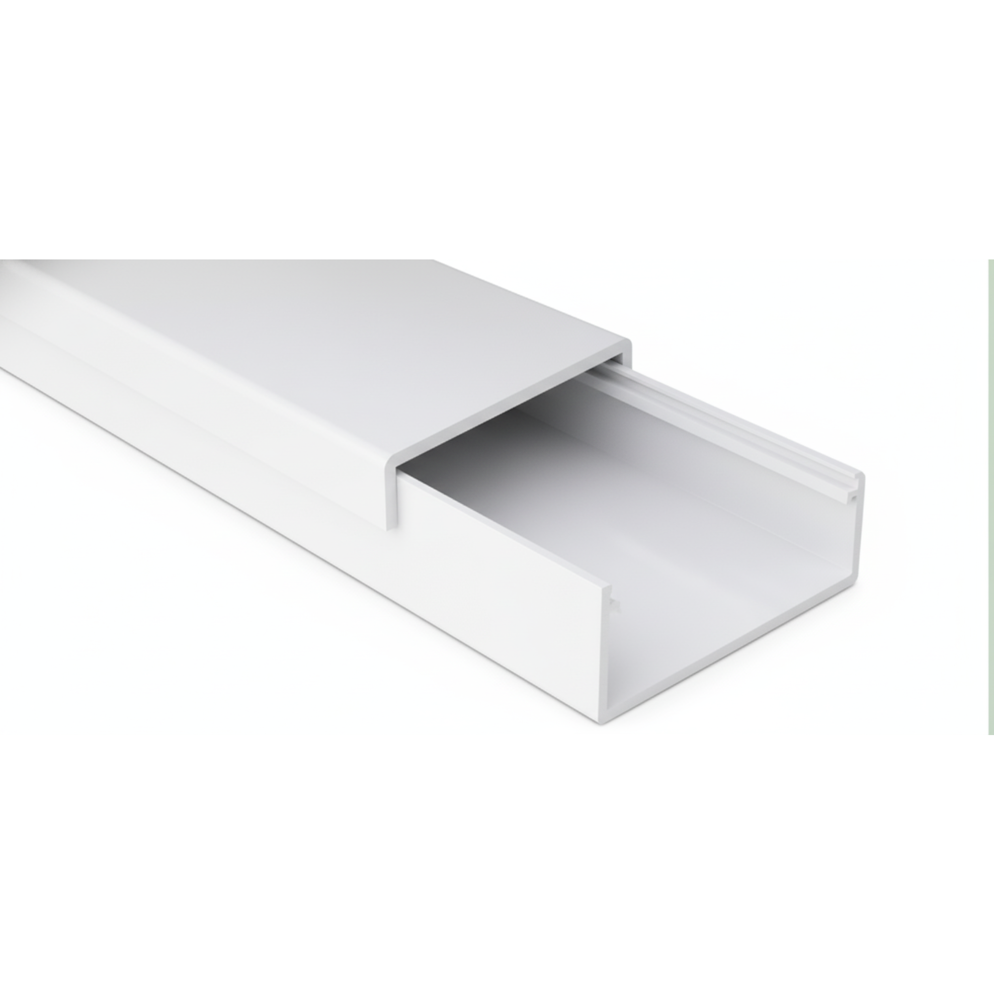 El Cablecanal de 40×16 mm es un modelo de alta capacidad, diseñado para gestionar grandes volúmenes de cableado o para alojar conductores de alto calibre. Con 4 cm de ancho y 1.6 cm de alto, es la solución ideal para instalaciones comerciales, industriales, o en zonas de mucho tráfico de cables como centros de entretenimiento o puestos de trabajo con múltiples dispositivos. Permite consolidar de manera eficiente y prolija cables de alimentación, red, teléfono y video en un único y robusto canal.