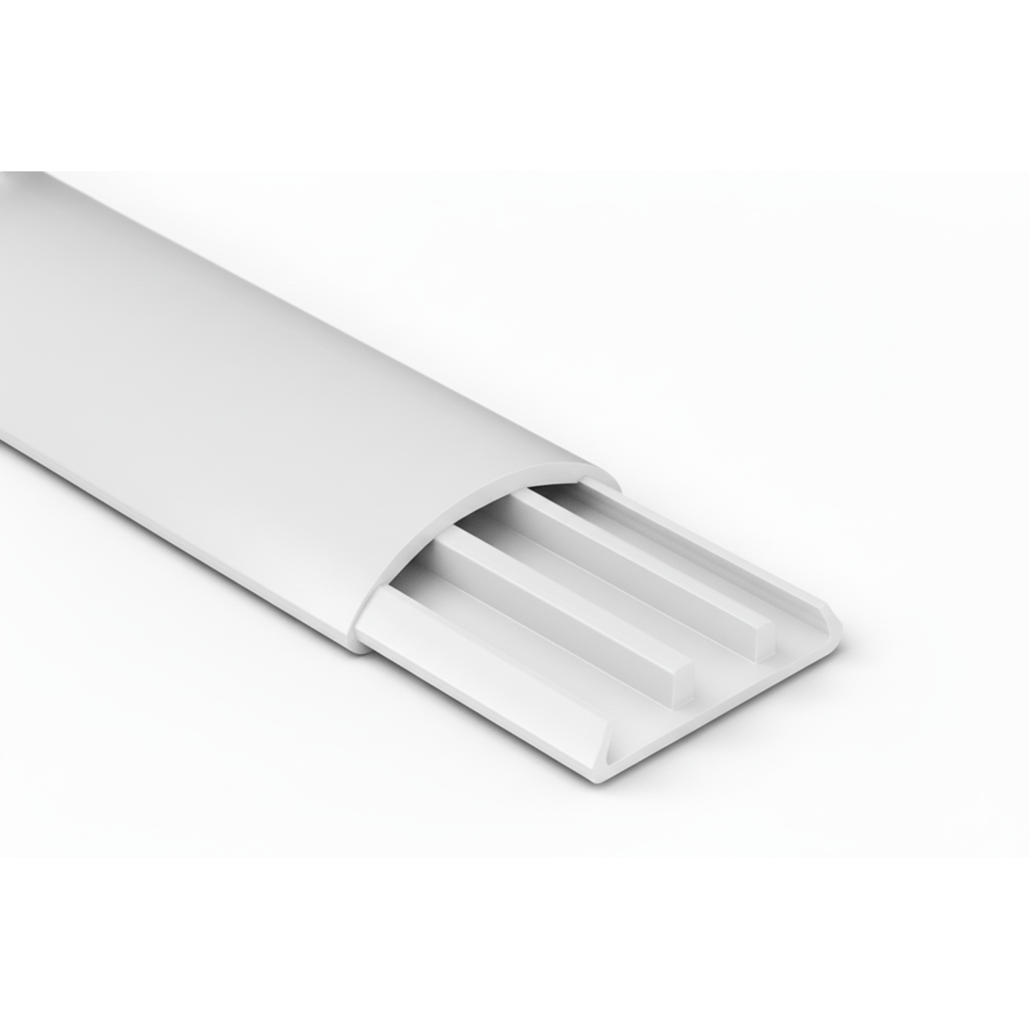 Su diseño está optimizado para mimetizarse con el zócalo de la pared, ofreciendo una solución mucho más prolija que las canalizaciones estándar. La versión con cinta autoadhesiva facilita una instalación instantánea y sin herramientas sobre superficies lisas, haciendo de este cablecanal la opción preferida para renovaciones y oficinas que valoran la rapidez y la estética. La tapa a presión asegura la protección total de los cables.