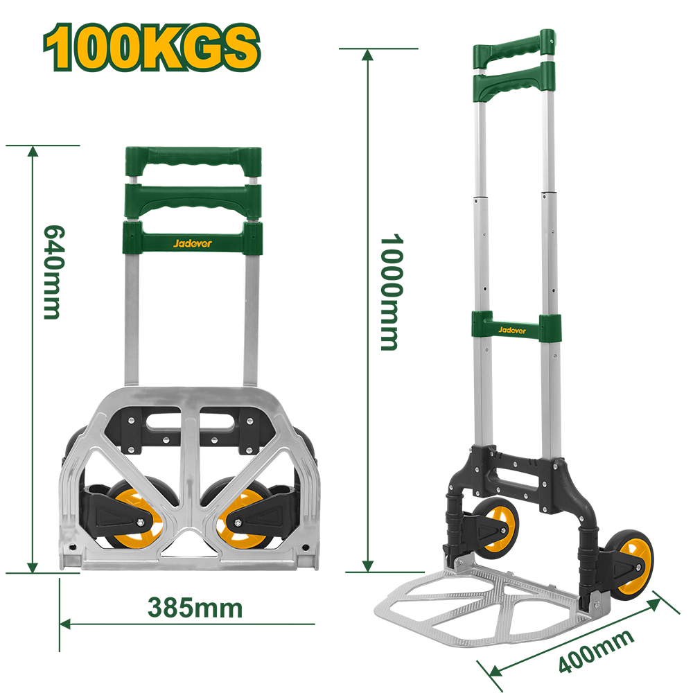 El carro de mano Jadever modelo JDWB8A10 es la herramienta de logística ideal para el traslado de cajas, mercaderías y bultos pesados con el mínimo esfuerzo. Diseñado para ofrecer una capacidad de carga de hasta 100 kg, este carro combina una estructura robusta con una ligereza sorprendente, facilitando las tareas de carga y descarga en almacenes, oficinas o mudanzas domésticas.
