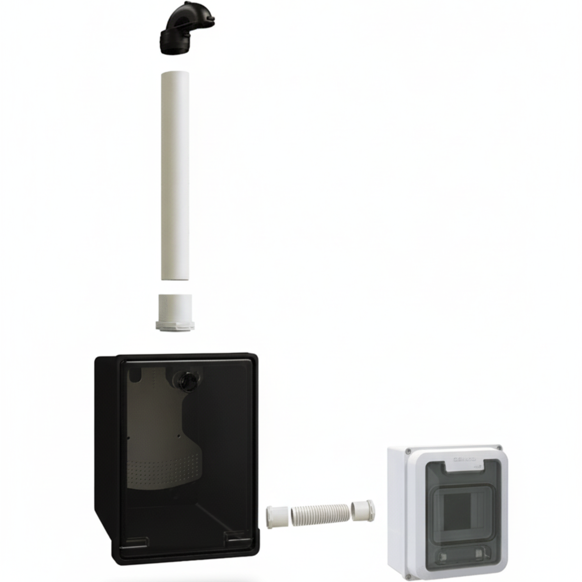 - Incluye los componentes esenciales para la instalación del medidor, excluyendo el caño de bajada y la llave térmica.