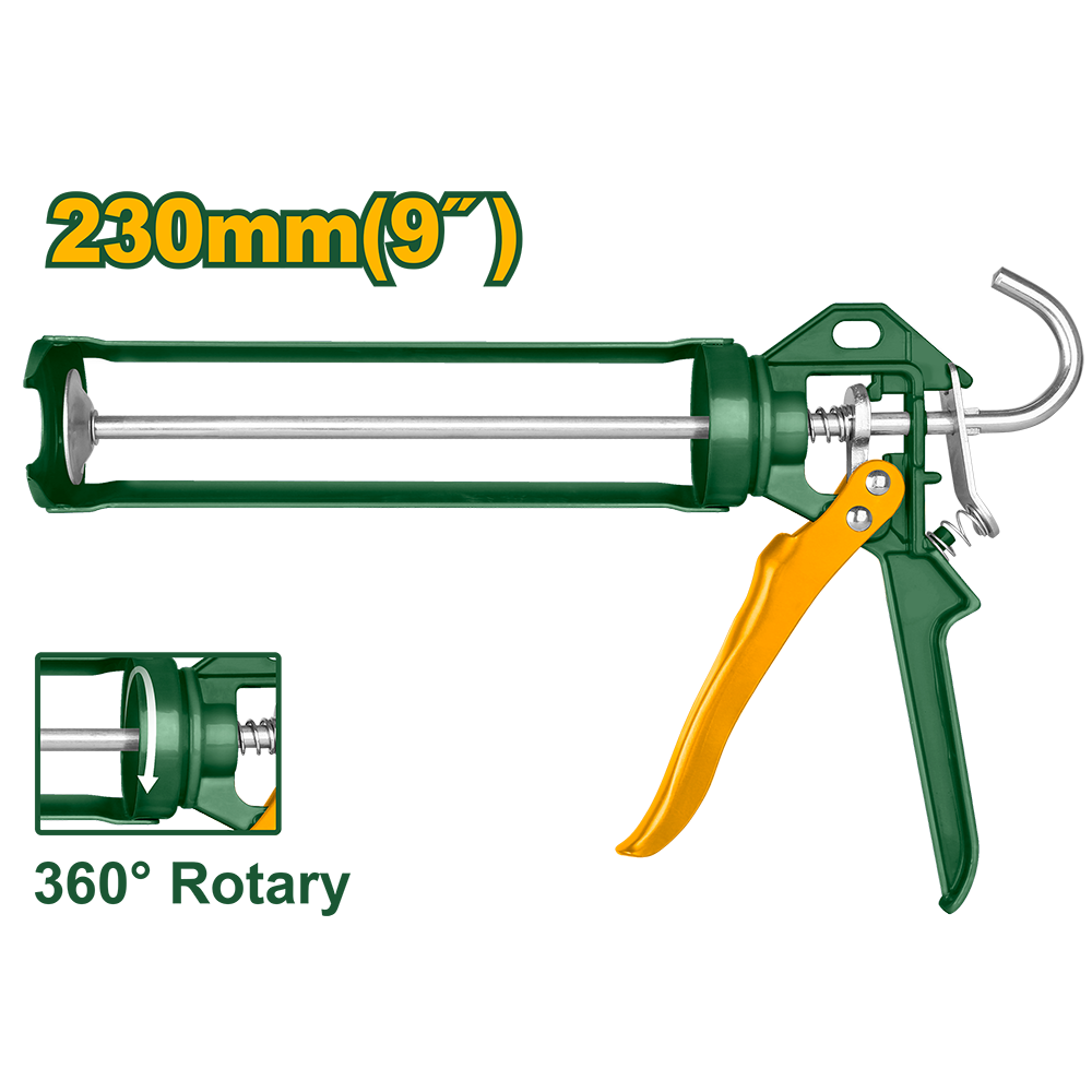 Su diseño cuenta con un mango ergonómico y un gatillo de alta sensibilidad que reduce la fatiga en la mano durante usos prolongados. El sistema de varilla lisa permite un avance fluido del cartucho, mientras que el freno de liberación rápida detiene el flujo de sellador de manera instantánea, asegurando cortes limpios y precisos. Es la herramienta ideal para aplicar siliconas, poliuretanos y adhesivos de montaje en aberturas, sanitarios y juntas de dilatación con un acabado de nivel industrial.