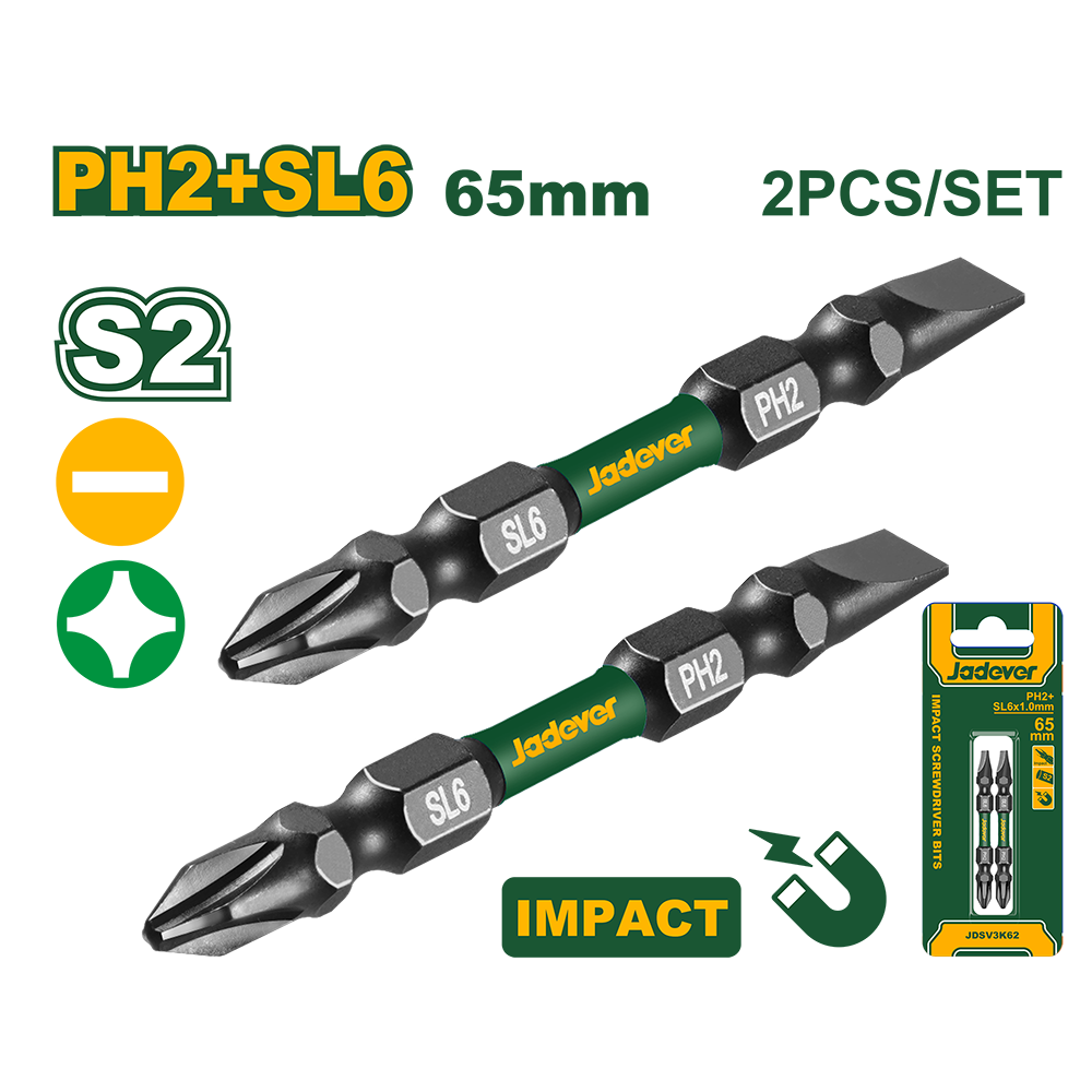 Las puntas de destornillador Jadever modelo JDSV3K63 están específicamente diseñadas para soportar el alto torque de los atornilladores de impacto. Fabricadas en acero S2, una aleación de grado industrial conocida por su excepcional dureza y elasticidad, estas puntas absorben los picos de torsión para evitar la rotura y el desgaste prematuro de la cabeza.
