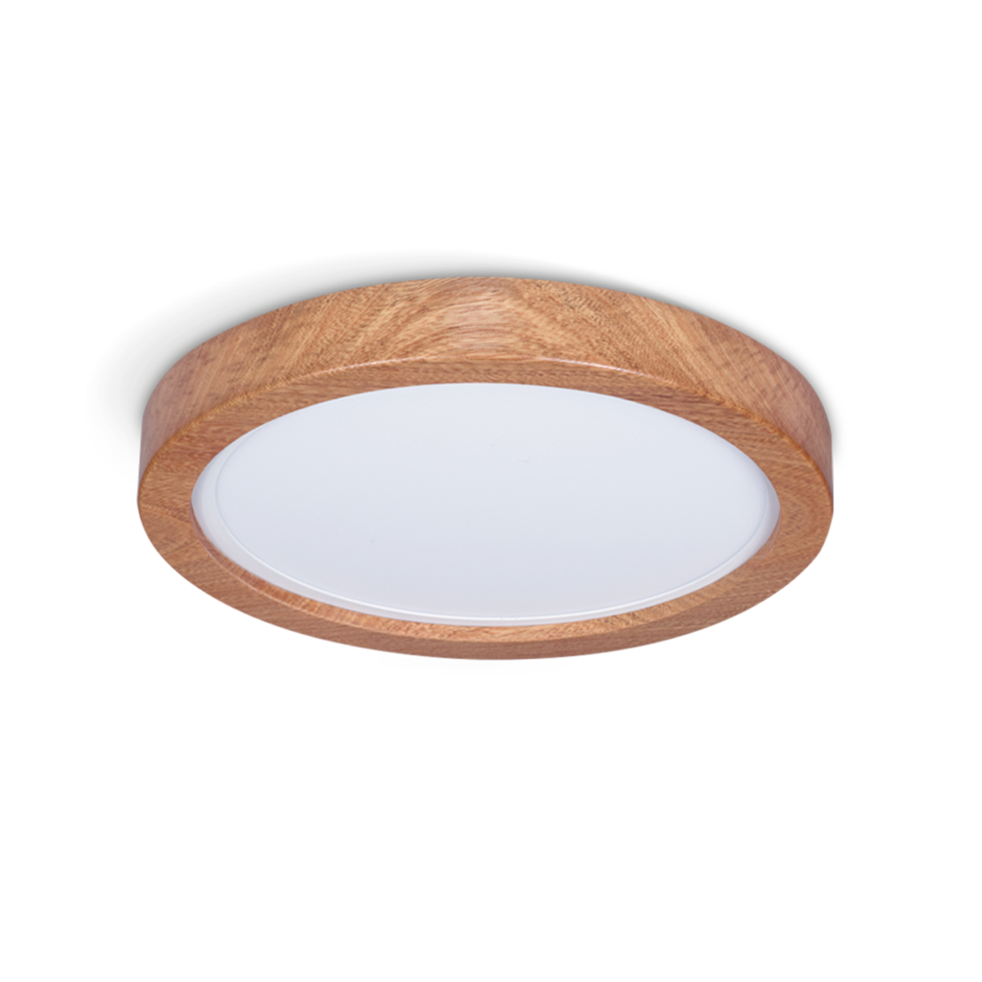 147041. Iluminá tus espacios con la perfecta combinación de diseño y eficiencia que ofrece este Plafón LED Circular. Su diseño se distingue por una elegante base de madera de roble, que aporta un tono más oscuro y una veta marcada, ideal para sumar calidez y sofisticación al techo. Gracias a su potente tecnología LED integrada de 24W, proporciona una iluminación eficiente con luz cálida, perfecta para crear una atmósfera acogedora en livings, dormitorios o cocinas. Con un diámetro de 32 cm, es un elemento que, aunque discreto por ser un plafón, ofrece una excelente cobertura lumínica.
